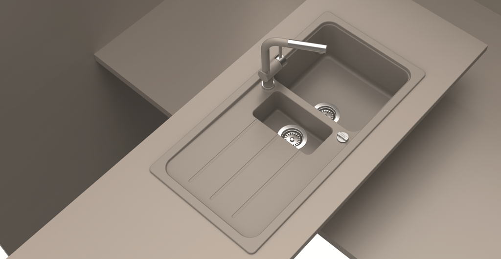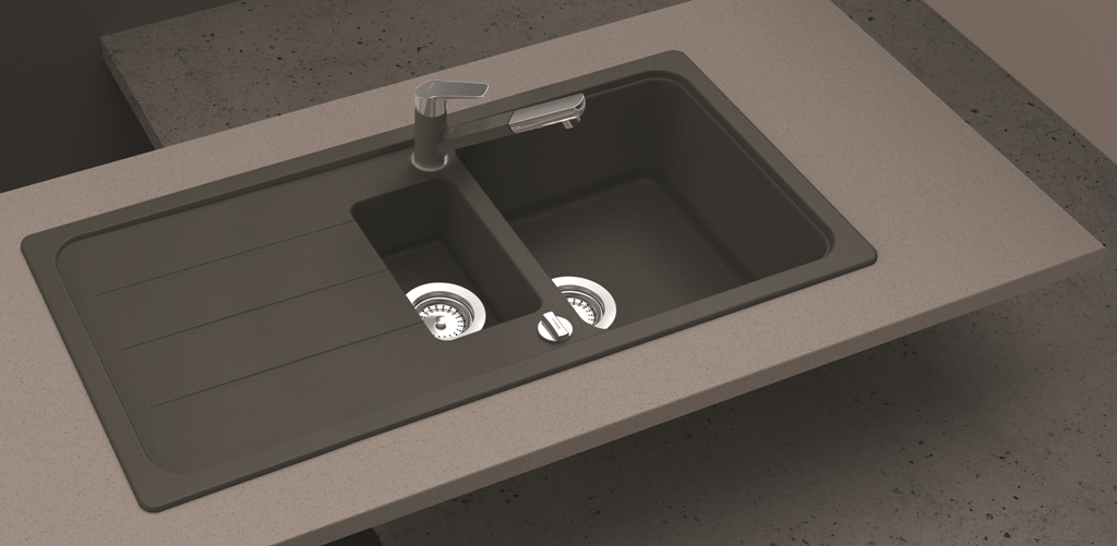 Granitspüle aus Quarzkomposit Spüle mit Drehexcenter Außenmaße 1000x500mm