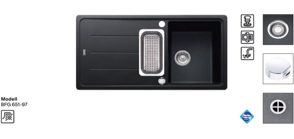 Granitspüle / Einbauspüle reversibel Küchenspüle aus Fragranit+ Außenmaße: 970x500mm
