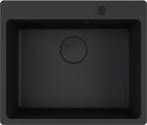 Granitspüle / Einbauspüle mit Hahnlochbank Black Matt - Black Collection Küchenspüle aus Fragranit+ Außenmaße: 590x500mm
