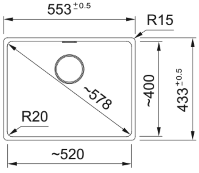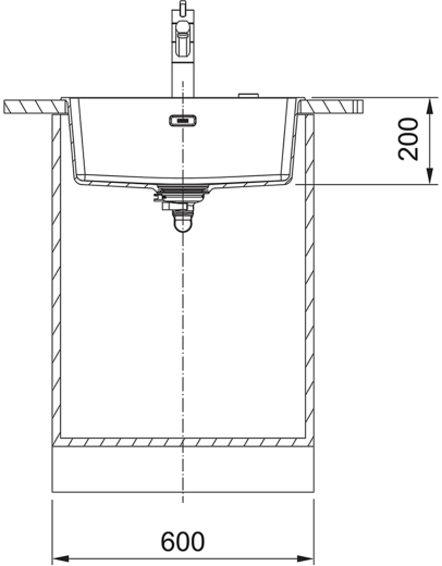 UNTERBAUSPÜLE Edelstahlspüle mit Handbetätigung Außenmaße: 380x450mm