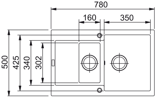 Edelstahlspüle / Einbauspüle Oberfläche: Seidenglanz Außenmaße: 780x510mm