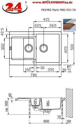 Granitspüle / Einbauspüle reversibel Küchenspüle aus Fragranit+ Graphit ✅Lagerware! Außenmaße: 780x500mm