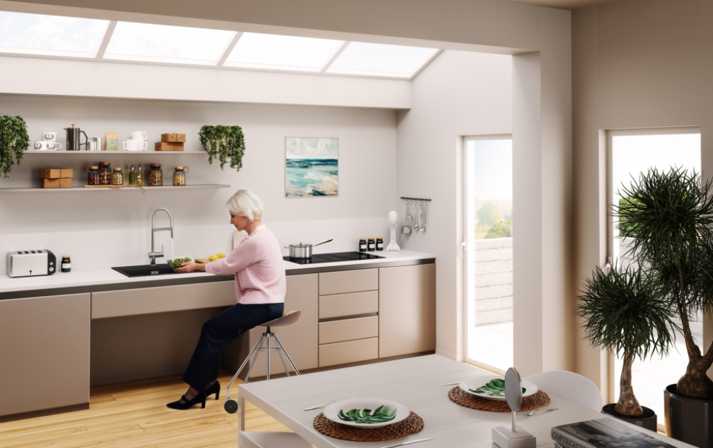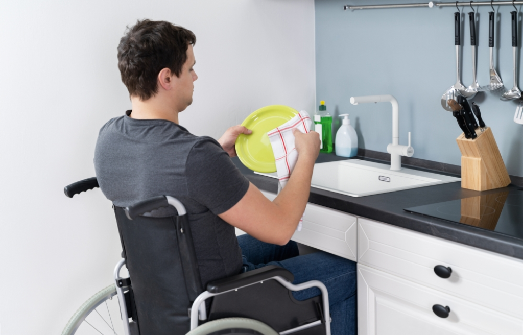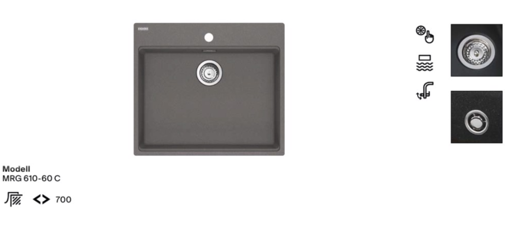 Granitspüle / Einbauspüle mit Handbetätigung Küchenspüle aus Fragranit+ für barrierefreie Bereiche Außenmaße: 635x559mm
