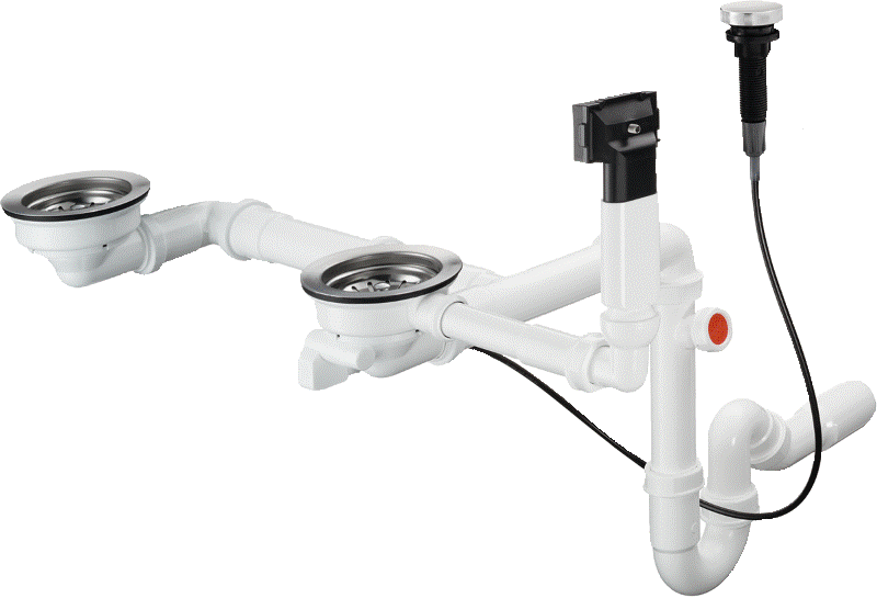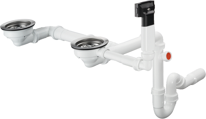 Geruchsverschluss mit 2x Geräteanschluss Abgangsrohr flexibel