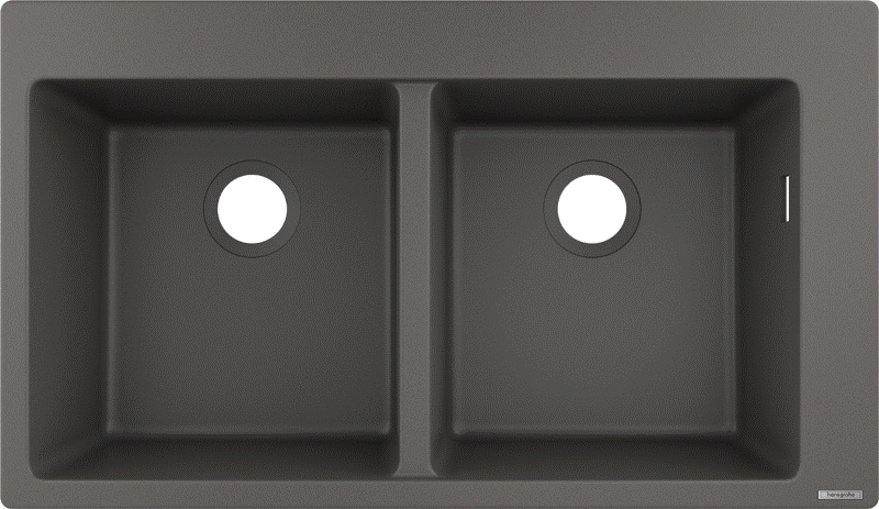 HANSGROHE Küchenspüle S51 S510-F770 SilicaTec Granitspüle 370/370 Einbauspüle in 3 Farben mit Siebkorb als Stopfen- oder Drehknopfventil