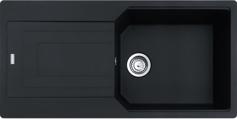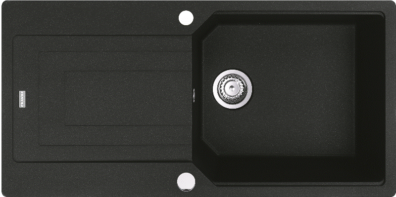 Granitspüle / Einbauspüle mit Hahnlochbank Black Matt - Black Collection Küchenspüle aus Fragranit+ Außenmaße: 760x510mm