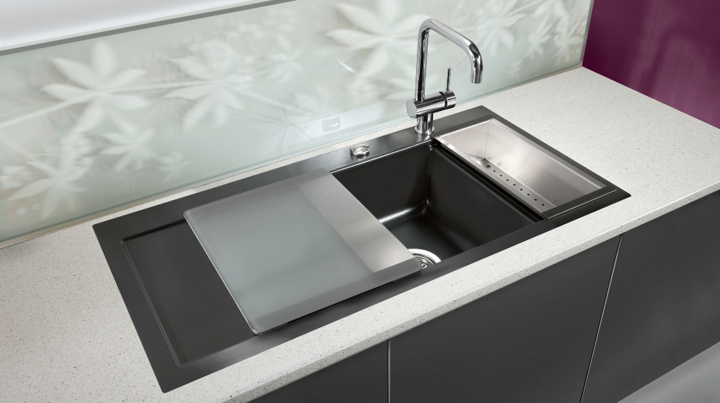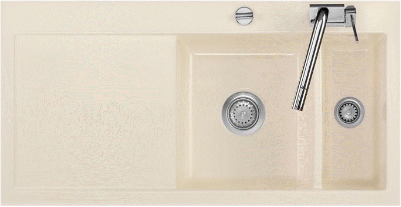KERAMIK-Einbauspüle mit Handbetätigung NUR für die flächenbündige Montage Außenmaße: 976mm±1mm x 486mm±1mm Ausschnittsmaß in der APL: Breite 980 x Tiefe 490mm