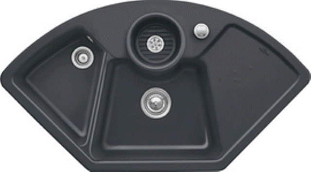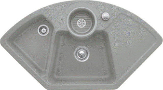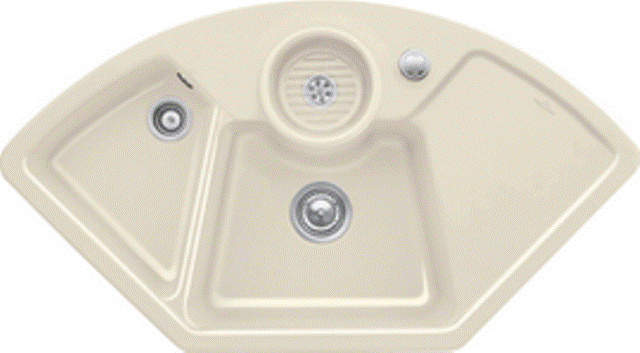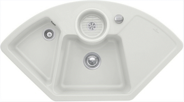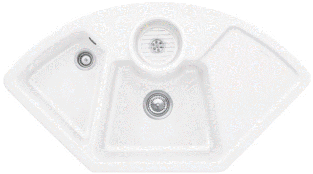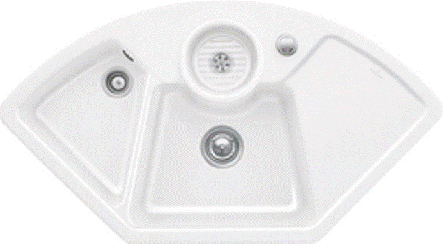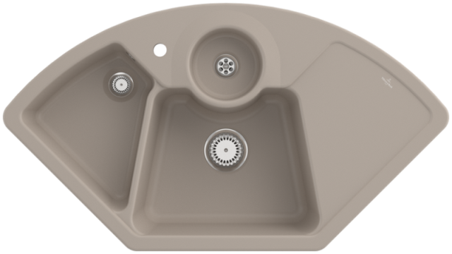 Keramik-Eck-Einbauspüle mit Handbetätigung Material: Villeroy & Boch CeramicPlus Außenmaße: 1075x600mm