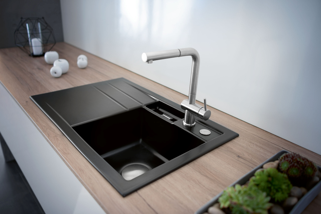Einhebelmischer in Spülenfarbe Farbvariante: pulverbeschichtet mit herausziehbarer Schlauchbrause