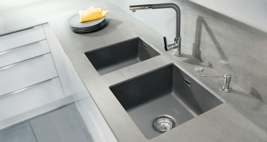 KERAMIK-Unterbauspüle mit Handbetätigung NUR für die Unterbau Montage Außenmaße: 553±1mm x 441±1mm Ausschnittsmaß in der APL: Breite 483 x Tiefe 375mm / R 6mm