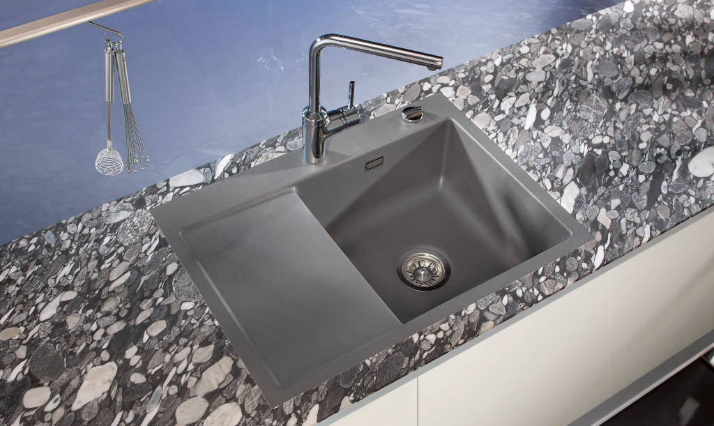 KERAMIK-Einbauspüle mit Handbetätigung NUR für die flächenbündige Montage Außenmaße: 676mm±1mm x 486mm±1mm Ausschnittsmaß in der APL: Breite 680 x Tiefe 490mm