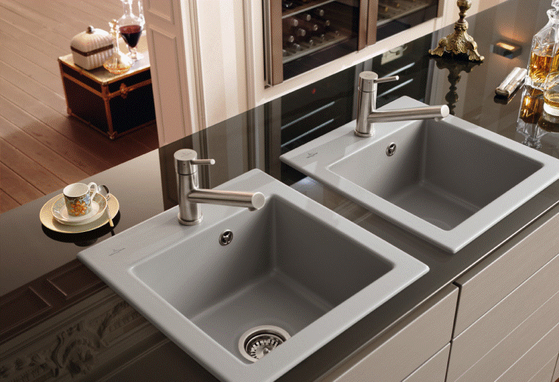 Keramik-Einbauspüle mit Handbetätigung Material: Villeroy & Boch CeramicPlus Außenmaße: 475x510mm