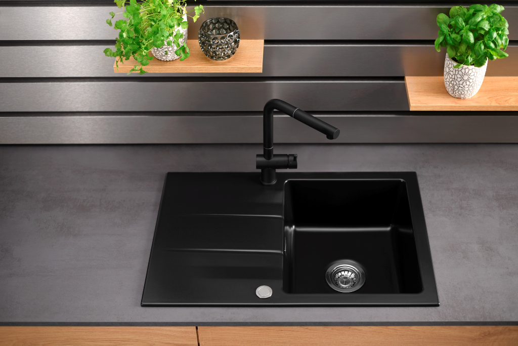 KERAMIK-Einbauspüle mit Handbetätigung Beckenabmessungen: 353* x 430*mm Außenmaße: 750mm±1,5% x 510mm±1,5% Ausschnittsmaß in der APL: Breite 720 x Tiefe 480mm für Unterschränke ab Breite