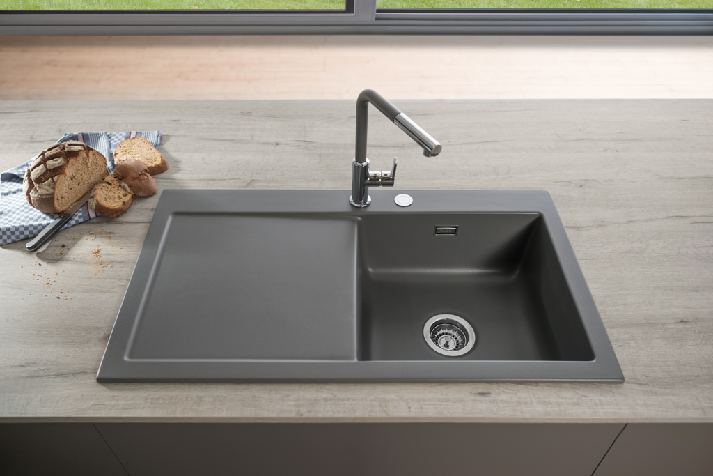 KERAMIK-Einbauspüle mit Handbetätigung Beckenposition wählen! Außenmaße 900x510mm Beckenabmessungen:410x385mm Ausschnittsmaß in der APL: Breite 870 x Tiefe 480mm für Unterschränke ab Breite