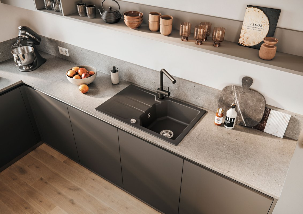 KERAMIK-Einbauspüle mit Drehexcenter Beckenabmessungen: 379* x 430*mm Außenmaße: 800mm±1,5% x 510mm±1,5% Ausschnittsmaß in der APL: Breite 770 x Tiefe 480mm für Unterschränke ab Breite