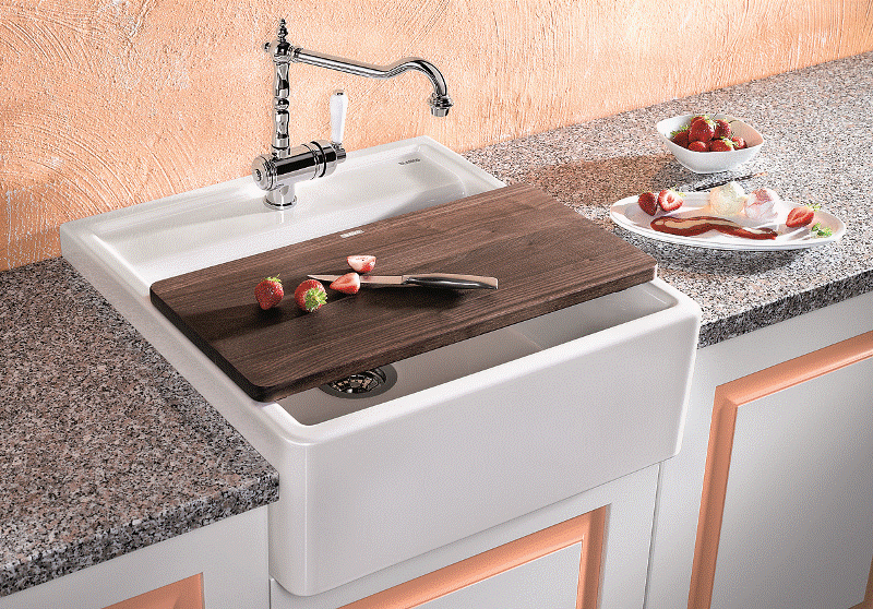 Sie suchen die perfekte Lösung für traditionelle und moderne Landhausküchen? BLANCO PANOR ist genau die richtige Keramikspüle für Ihre Bedürfnisse. In edlem Kristallweiß überzeugt die PANOR-Familie durch elegante Linienführung. Das große Becken ist als Spülstein – auch „Spültrog“ genannt – der Klassiker für traditionsbewusstes Küchendesign. Spülen aus Keramik sind besonders kratzfest und pflegeleicht, da sie eine sehr harte und glatte Oberfläche haben. BLANCO PANOR fügt sich als kompaktes Zwischenbau-Modul harmonisch in Ihr Küchenumfeld ein. Die hintere Seite ist für die Wandmontage unglasiert. Für die Spüle eignet sich ein 60er Unterschrank. Zu den stilvollen Extras für die wertbeständige Spüle zählt ein praktisches Arbeitsbrett aus massivem, hochwertigen Nussbaumholz.