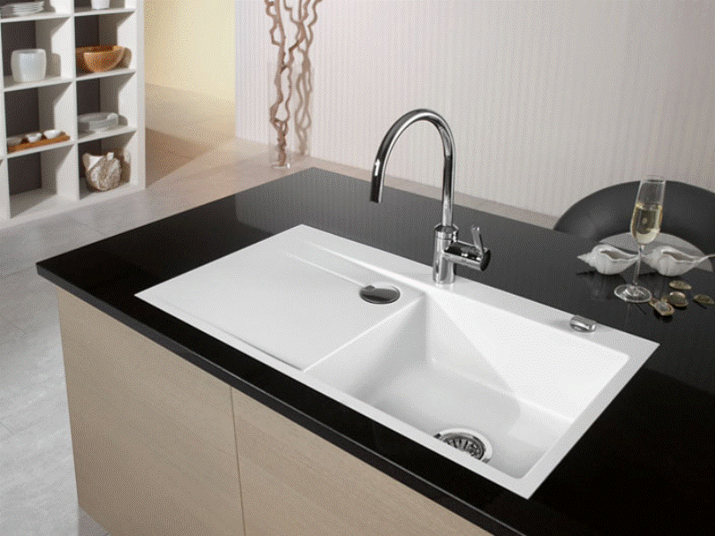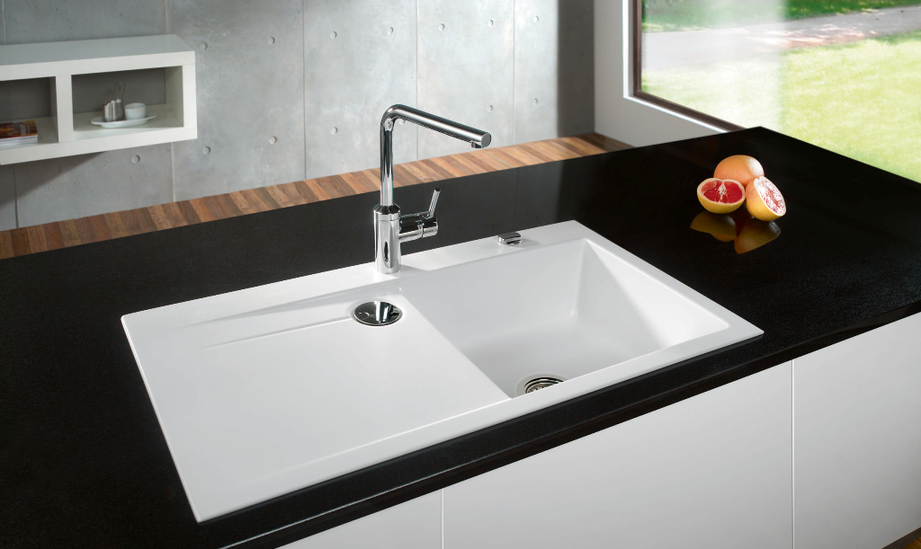 Keramik-Unterbauspüle mit Handbetätigung Material: Villeroy & Boch CeramicPlus Außenmaße: 545x440mm