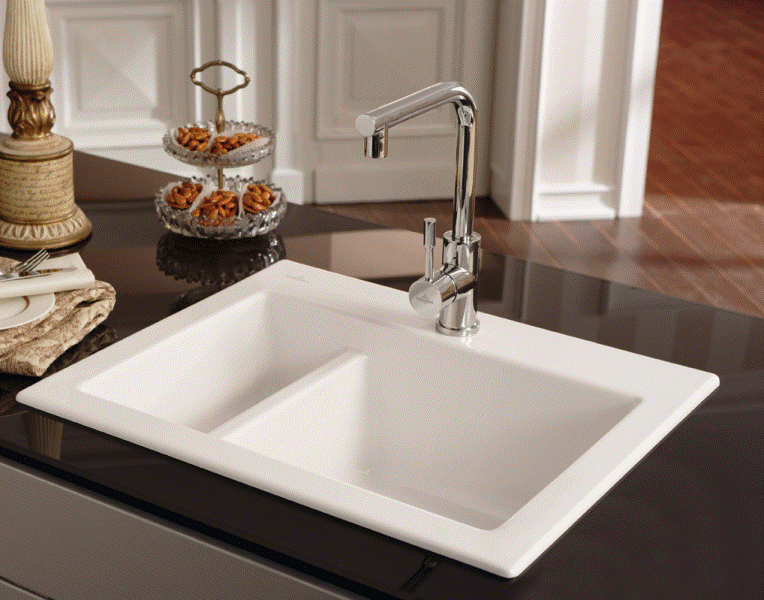 Keramik-Einbauspüle mit Handbetätigung Material: Villeroy & Boch CeramicPlus Außenmaße: 620x510mm