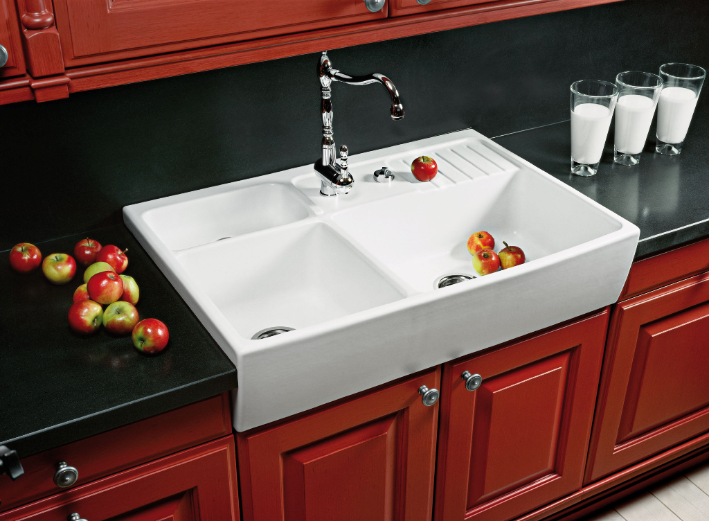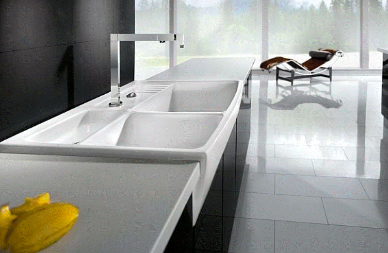 Keramik-Einbauspüle mit Handbetätigung Material: Villeroy & Boch CeramicPlus Außenmaße: 860x510mm