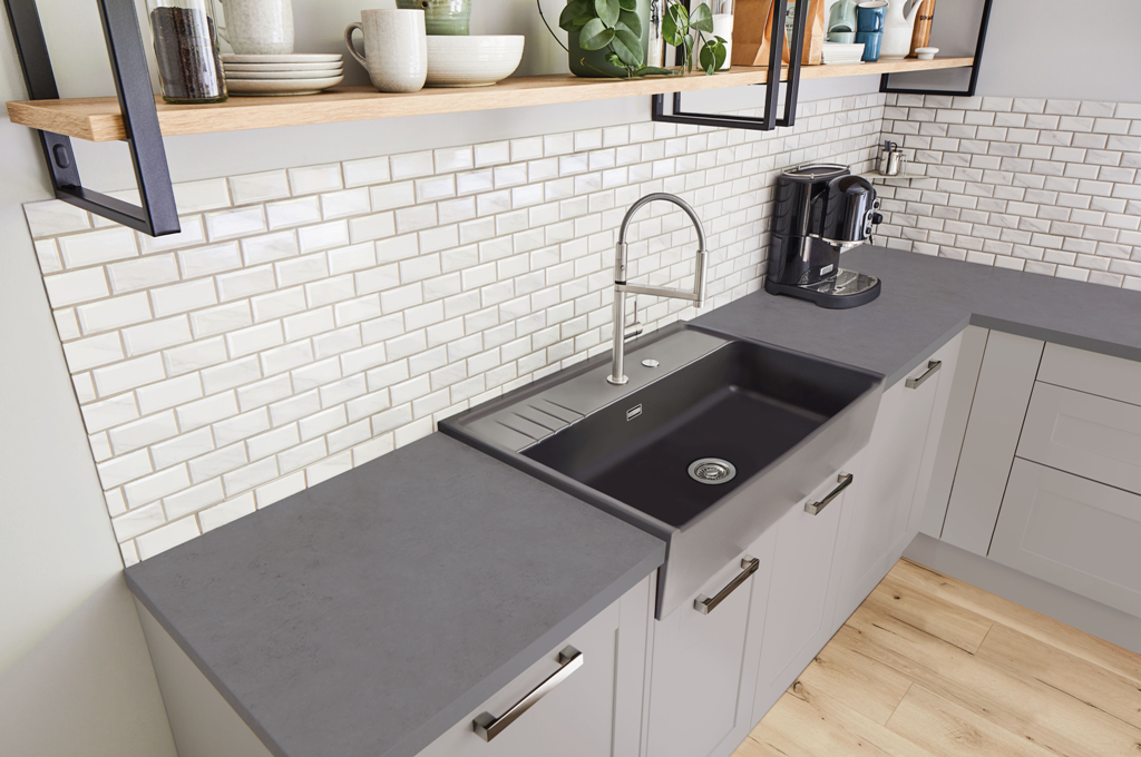 Einhebelmischer mit Zugauslauf Hochdruck Küchenarmatur / Spültischarmatur Oberfläche: Schwarz