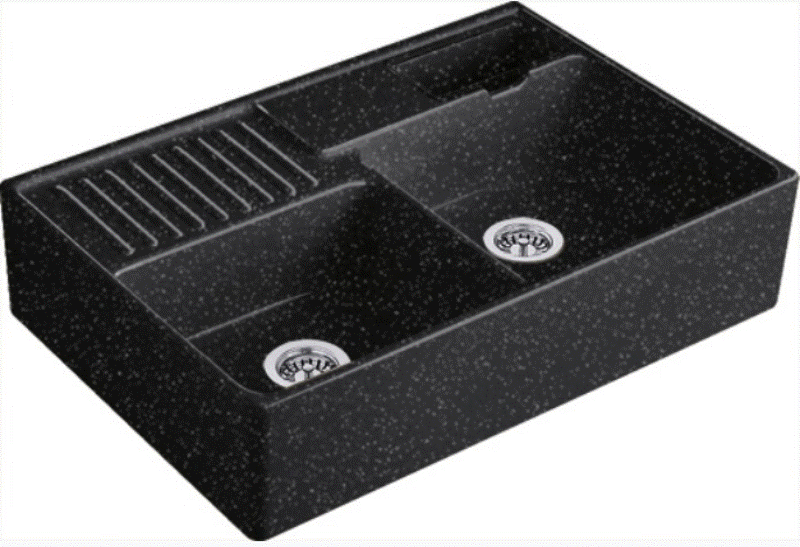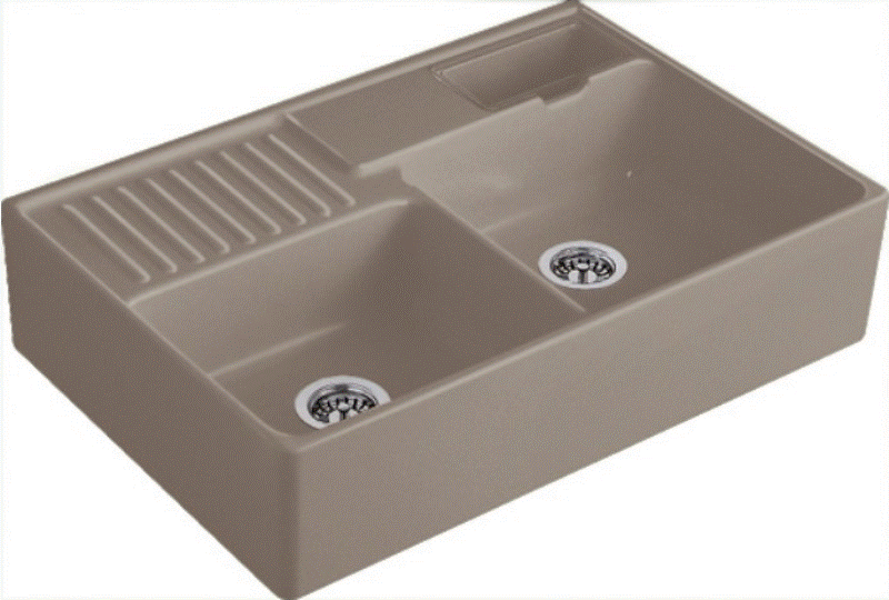 KERAMIK-Spül-Modul / Spülstein Außenmaße: 895±1mm x 630±1mm Beckenabmessungen:425x355/425x420mm