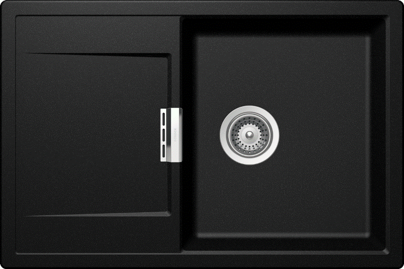 Nano Granitspüle aus Quarzkomposit   Spüle mit Drehexcenter Außenmaße: 765x510mm Spülbecken EXTRATIEF 200mm