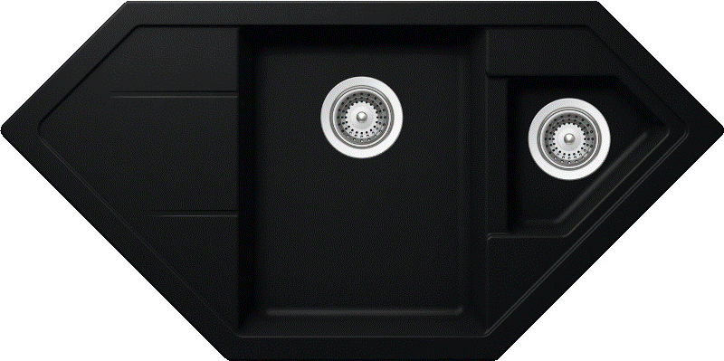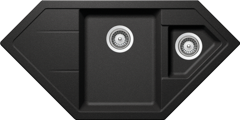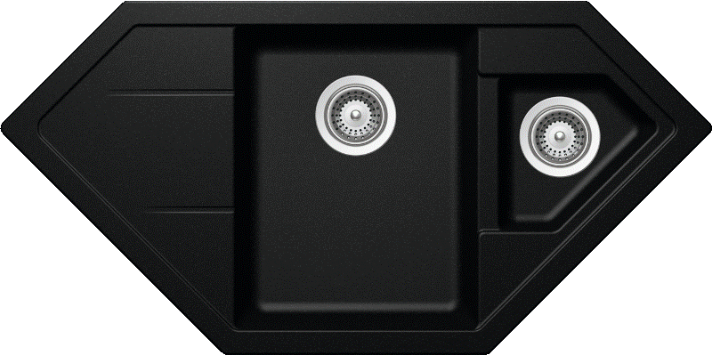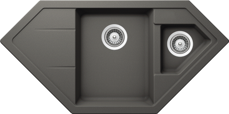 Nano-Granitspüle / Eckspüle aus dem Material .Cristadur® Classic Line zum Einbau von oben in die Arbeitsplatte