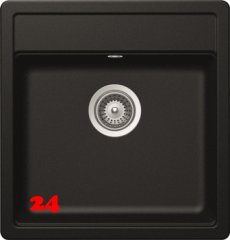 Nano Granitspüle aus Quarzkomposit Spüle mit Drehexcenter Außenmaße: 485x500mm Spülbecken EXTRATIEF 195mm