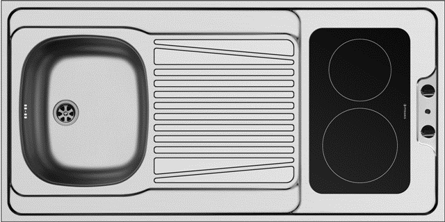 Edelstahlspüle / Auflagespüle Pantryabdeckung mit Ceran Kochfeld Außenmaße: 1200x600mm