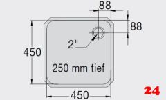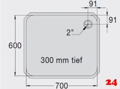 KWC Sirius Einlegebecken ohne Überlauf C20136L Gewerbespüle 1 Becken inkl. Standrohrventil Material: 1.4301 CNS V2A