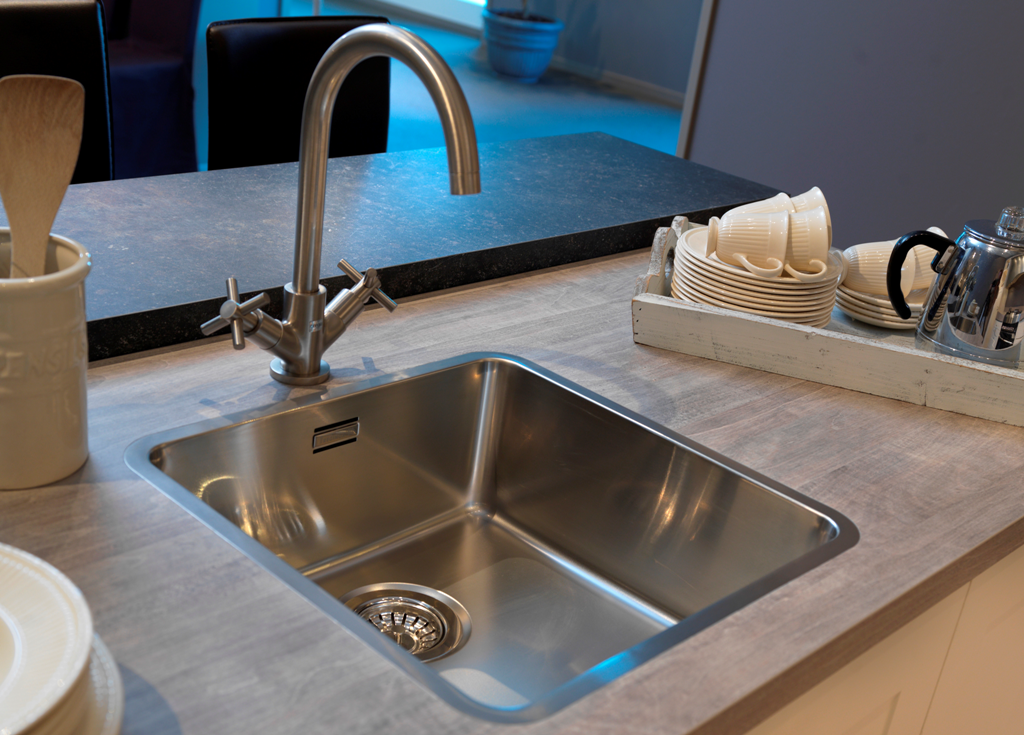 Edelstahlspüle mit Flachrand Außenmaße: 440x440mm Beckentiefe: EXTRATIEF 250mm