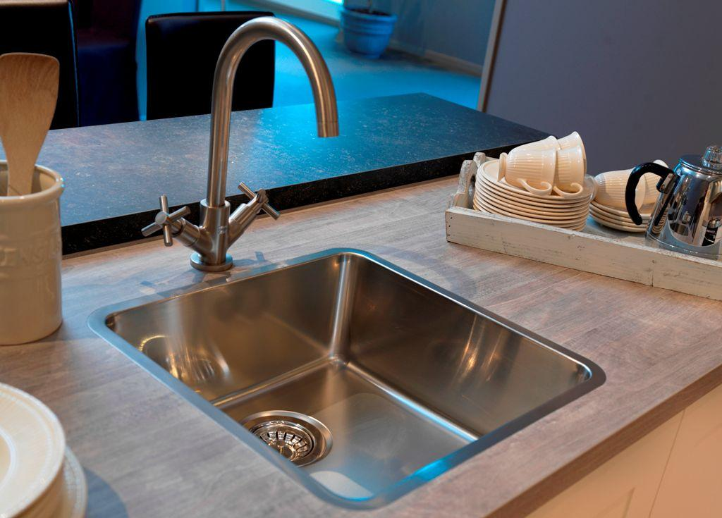 Edelstahlspüle mit Flachrand Spülen-Serie: Clean & Care (-CC-) Beckentiefe: EXTRATIEF 250mm