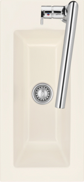 KERAMIK-Einbauspüle mit Handbetätigung ohne Überlauf Beckenabmessungen: 160* x 385*mm Außenmaße: 240mm±1,5% x 510mm±1,5% Ausschnittsmaß in der APL: Breite 210 x Tiefe 480mm für Unterschränke ab Breite