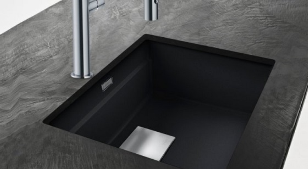 Granitspüle / Unterbauspüle mit Drehknopfventil Black Matt - Black Collection Küchenspüle aus Fragranit+ Außenmaße: 560x460mm