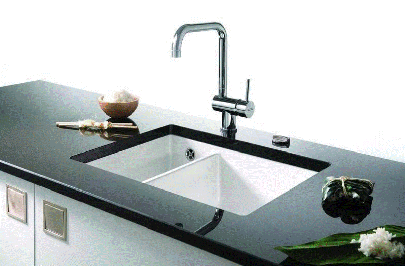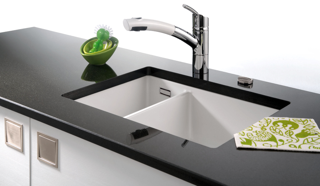 KERAMIK-Unterbauspüle mit Handbetätigung NUR für die Unterbau Montage Außenmaße: 553±1mm x 441±1mm Ausschnittsmaß in der APL: Breite 483 x Tiefe 375mm / R 6mm