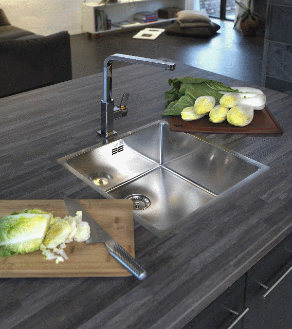 Edelstahl-Einbauspüle mit Flachrand Außenmaße: 440x440mm Beckentiefe: 180mm