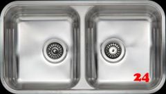 Edelstahl-Einbauspüle mit Flachrand Außenmaße: 740x440mm Beckentiefe: 2x180mm
