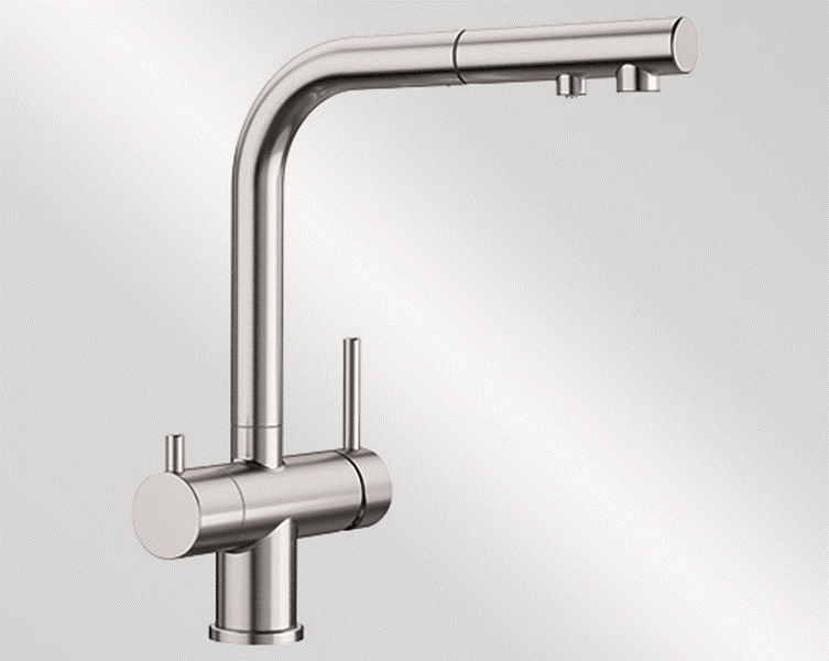 Smartness in jeder Hinsicht. BLANCO FONTAS liefert drei Optionen: warmes, kaltes sowie gefiltertes kaltes Wasser. Durch den integrierten BWT Mehrstufenfilter reinigt die Armatur das Wasser, reduziert Kalk sowie den Gehalt an Schwermetallen und verfeinert auf diese Weise spürbar den Geschmack. Macht 3 in 1 in einer Armatur. BLANCO FONTAS-S II Filter glänzt darüber hinaus mit dem herausziehbaren Auslauf für Kalt- bzw. Warmwasser und gefiltertes Wasser. Dieser Auslauf ermöglicht eine flexible Handhabung rund um das Spülbecken. So lassen sich Haushaltsgeräte wie z. B. Wasserkocher oder der Vorratstank einer Kaffeemaschine bequem mit gefiltertem Wasser befüllen. Eine frische Lösung, die man schmeckt. Die beiden separaten Bedienhebel für Kalt- bzw. Warmwasser auf der rechten Seite und gefiltertes Wasser auf der linken Seite sorgen dafür, dass man immer genau das Wasser zapfen kann, das man gerade möchte.