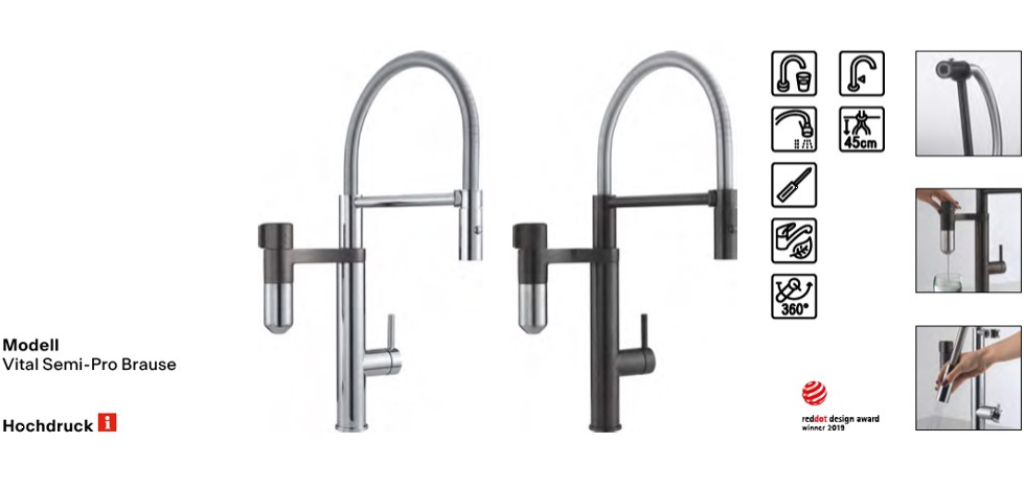 Einhebelmischer mit Pendelbrause und Trinkwasser Filtersystem Küchenarmatur / Spültischarmatur inklusive Clear Water Capsule System Vital Oberfläche: Chrom / Gun Metal