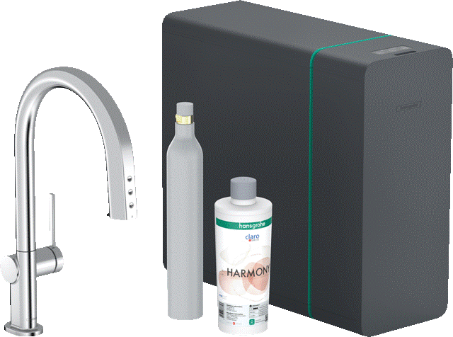 Einhebel-Küchenarmatur Hochdruck SodaSystem - Starter Set mit Ausziehauslauf mit sBox für eine leise, leichtgängige und geschützte Schlauchführung Oberfläche: Chrom