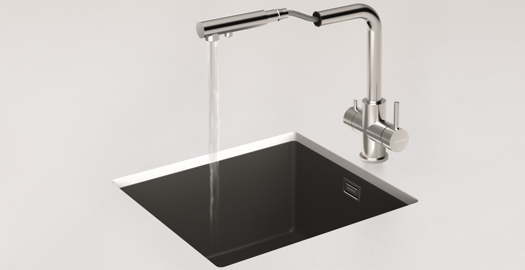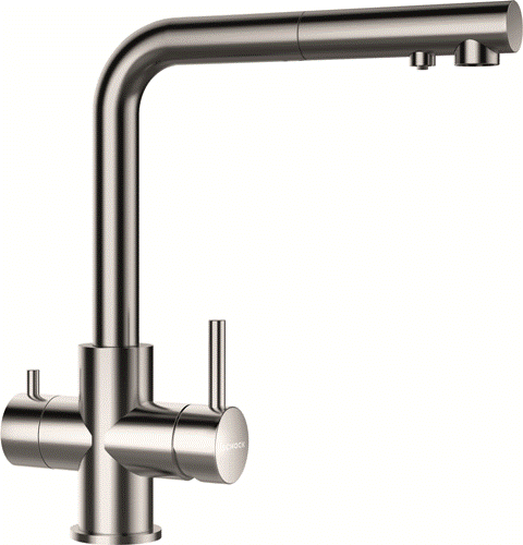Zweihebelmischer / Küchenarmatur Zugauslauf 3-Wege Armatur für gefiltertes Wasser Oberfläche: Edelstahl massiv